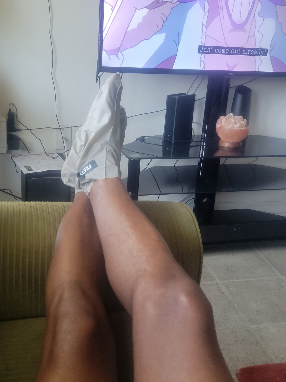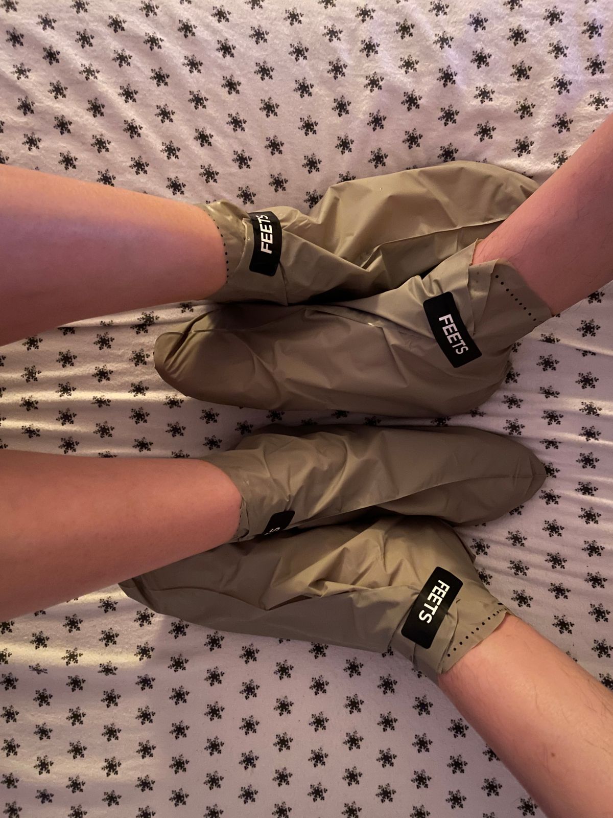 Deeply hydrating your feet with our foot mask designed specifically to comfortably fit most feet.