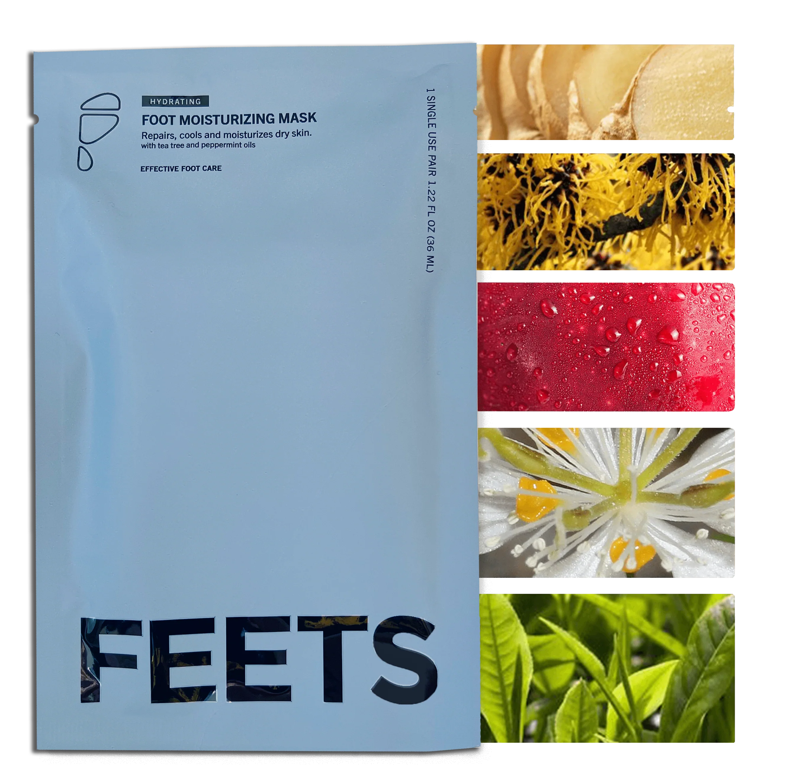 Refresh and moisturize your feet with our hydrating foot mask designed specifically to comfortably fit most feet. Enriched and formulated with tea tree oil, peppermint oil, and other natural ingredients for the unique needs of the skin on your feet. Our mask leaves your feet feeling soothed and fresh.
